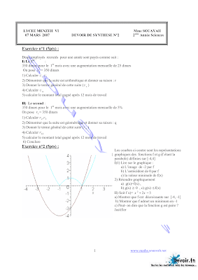 Télécharger devoir de synthèse 2 mathématiques 2ème année sciences