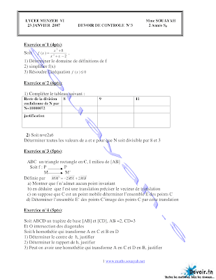 Télécharger devoir de contrôle 3 mathématiques 2ème année informatique